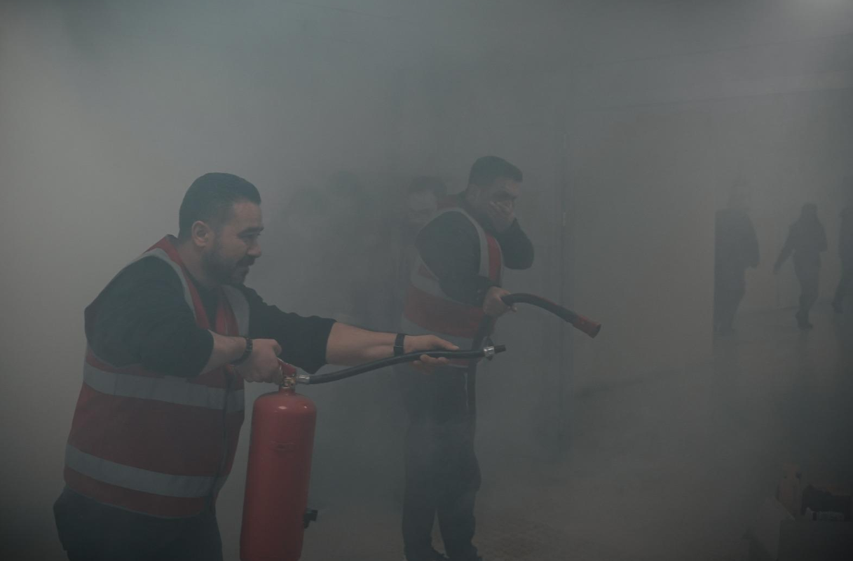 Senaryo gereği merkez üssü İzmir olan 6.9 büyüklüğünde deprem meydana geldi. Sarsıntı sırasında personel “çök-kapan-tutun” yöntemiyle korunurken, deprem sonrası binanın elektrik panosunda yangın çıktığı senaryosu devreye girdi.